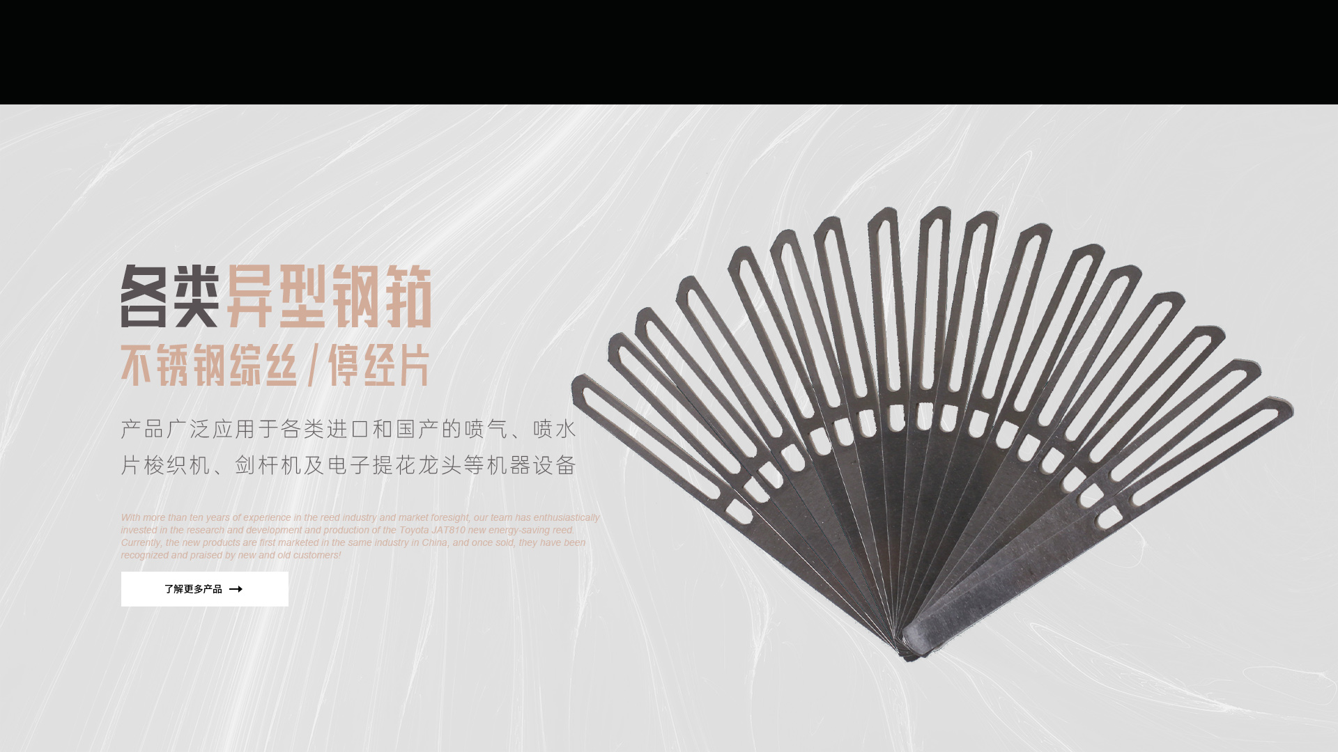 公司主要產(chǎn)品有:噴氣織機用各類異型鋼筘(傳統(tǒng)型豐田JAT710鋼筘及新研發(fā)的豐田JAT810節(jié)能筘);不銹鋼綜絲及不銹鋼停經(jīng)片。我們的產(chǎn)品廣泛應(yīng)用于各類進(jìn)口和國產(chǎn)的噴氣、噴水、片梭織機、劍桿機及電子提花龍頭等機器設(shè)備。